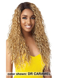 Premium Daily THORA Lace Part Wig. Heat resistant fiber. Color shown is DR CARAMEL. Hand-tied deep lace part wig. Comes with average size cap and adjustable straps. Cap comes with front and back combs. Manufactured by Outre.